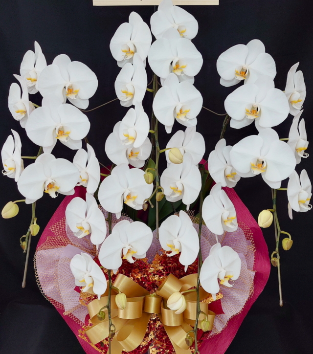 ※背丈が高い胡蝶蘭をご希望のお客様は、「胡蝶蘭5本立 沖縄 プラス」以上をお選びください。