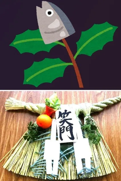 第100回:ヒイラギ(柊)~柊に守られ穏やかな一年に 2026.1.1 2026年が明けました。昨年は世界で対立・紛争が絶えず、国内では災害が相次ぎ、物価は高騰、日々の生活に不安がつきまといました。そこで年の初めのコラムは「今年こそは争いのない、平穏な一年になりますように!」との願いを込めて、邪気を払う縁起木であるヒイラギ(柊)をテーマにしました。 ヒイラギはモクセイ科モクセイ属の常緑広葉樹で、葉=写真左側=は肉厚で光沢があり、先端と縁に鋭い刺(とげ)が付いています。動物に食べられないよう自衛していると言われています。 キヘンに冬と書いて「柊」。冬を代表する樹木という意味かと思っていましたが、調べてみると違いました。葉の刺に触れると痛みます。そこで、痛いという古語「疼(ひいら)ぐ」が語源になりました。ヒイラギには「疼木」という漢字もあります。 古くから庭の北東(表鬼門)にヒイラギを植えると邪鬼の侵入を防ぐと信じられてきました。節分に焼いた鰯の頭をヒイラギの枝に刺して玄関先に飾る柊鰯(ひいらぎいわし)=イラスト=という風習は日本各地で残っています。鰯の匂いが鬼を誘い、ヒイラギの葉の刺が鬼の眼を刺す。あるいは、鬼が匂いと刺を恐れて近寄らないとされています。伊勢神宮のお膝元で売られている注連縄(しめなわ)=写真=にヒイラギの葉があしらわれているのも、魔除けのためです。 ヒイラギが縁起木になったのは、ひとえに刺のある葉の形状によるものでしょう。しかし、一般的には刺は負のイメージにつながります。態度や言葉がきつい様子は「とげとげしい」。口調や目つきが厳しく、意地悪い態度は「とげがある」。「苛立つ」の「苛」は草木の刺を意味する言葉です。ところが、ヒイラギの刺は私たちを守ってくれる正のイメージを呼び起こします。 川端康成は京都の老舗旅館「柊家」を常宿にしていました。紀行文「柊家」の中で『染分けの色のやはらかい柊模様の掛布團に、白い清潔なおほいがかけられるのを見てゐると、なじみの宿に安心する。』『ゆかたばかりでなく、座布團、湯呑や飯茶碗その他の瀬戸物にまで柊の模様がついてゐるのだが、その柊は目立たない。』と書き、ヒイラギの模様に安らぎを覚えています。 固くてしっかりした葉に刺をまとって自らを守るヒイラギには凛とした佇まいさえあります。刺があるから敬遠されるのではなく、刺があるから親しまれる。ヒイラギは不思議な魅力を持つ木です。