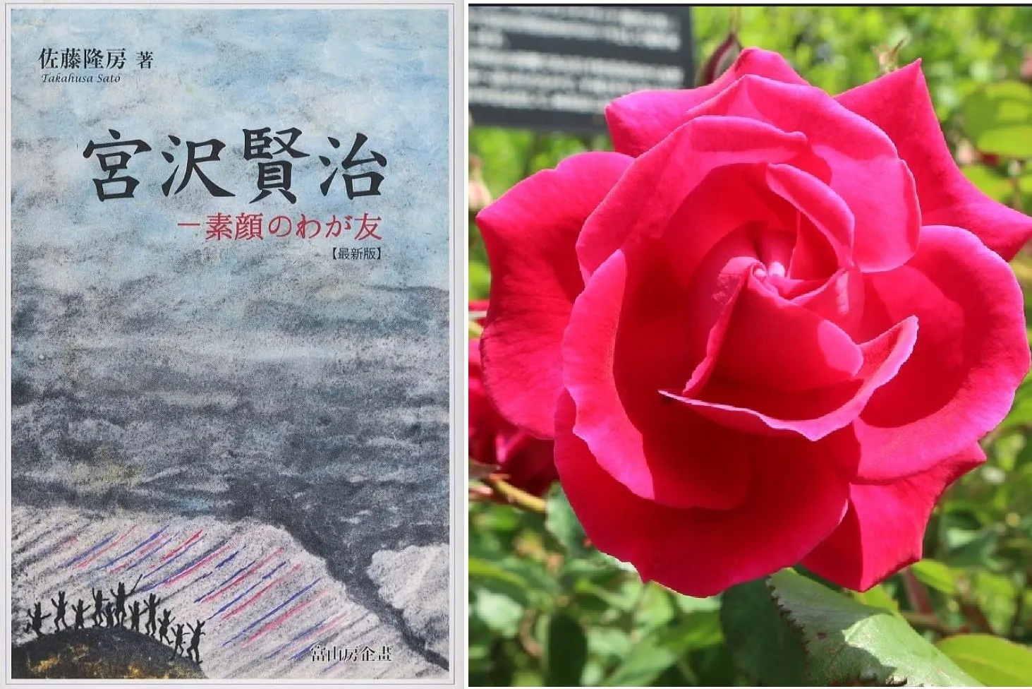 後に、賢治が贈ったバラは「グルス アン テプリッツ」=写真右側=と分かりました。和名は「日光」、花径7cmほどのビロードのような真紅のバラです。賢治の童話に最も多く登場する花